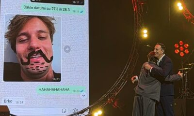 Poznati pjevač se pridružio mladom kolegi na prvom od sedam koncerata, a njihova privatna prepiska prikazana na ekranima izazvala je salve smijeha u dvorani