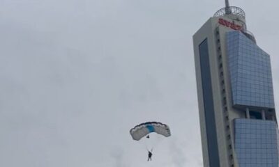 Skakač iz Nizozemske izveo je nenajavljeni padobranski skok sa vrha najviše građevine u Sarajevu, čime je prekršio sigurnosna pravila objekta.
