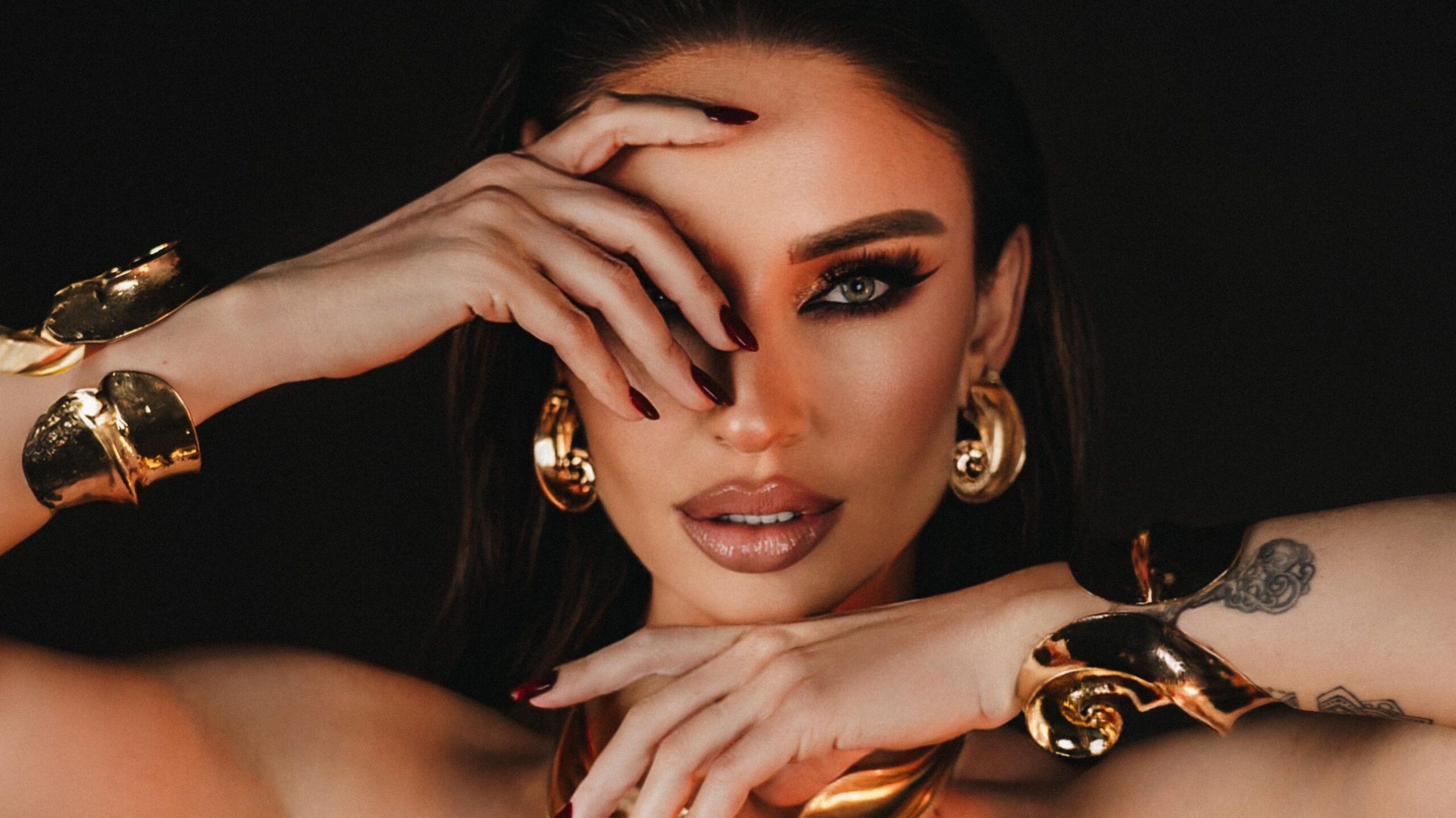 Na fotografijama koje je podijelila, jasno se vidi prostrani francuski krevet, dok su zidovi sobe uređeni u elegantnim zlatnim nijansama. Posebnu pažnju privlači i njena slika na zidu, a Katarina je nosila haljinu u sličnim tonovima, ukrašenu resama koje prate liniju tijela.