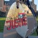 Umjetnička postavka simbolizira suze žrtava nepravde i poziva na lično preispitivanje odnosa prema pravdi