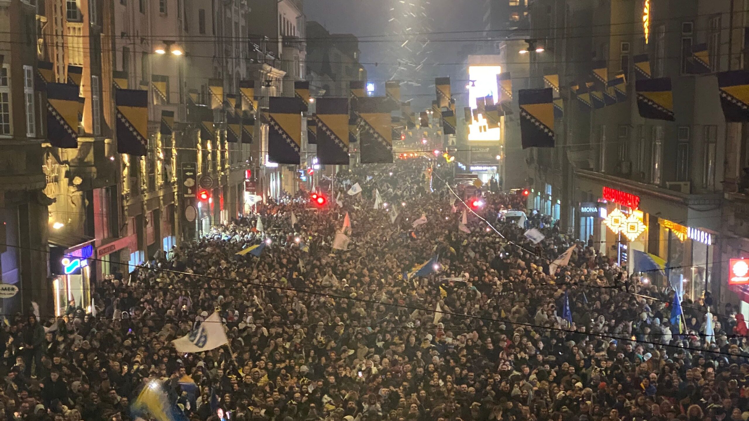 Ispred Vječne vatre istaknuta je velika zastava Bosne i Hercegovine, a okupljeni građani su pjevali navijačke i domoljubne pjesme, izražavajući ponos zbog plasmana na drugo veliko takmičenje u historiji reprezentacije. Tokom noći, slavlje se proširilo i na druge gradove, poput Tuzle, gdje su građani organizovali skupove i proslavili uspjeh Zmajeva.