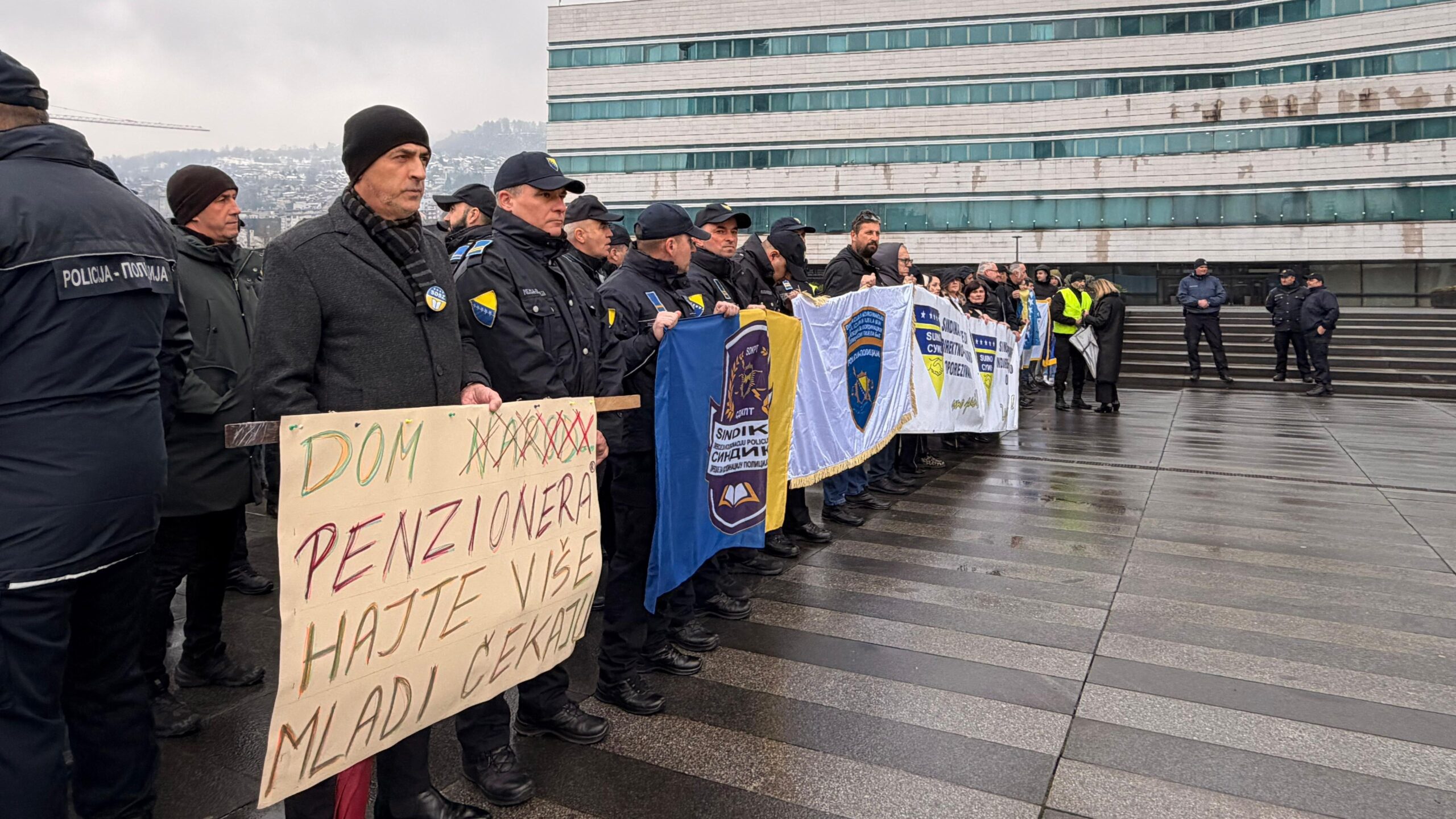 Stotine državnih službenika, policijskih službenika i zaposlenika Uprave za indirektno oporezivanje Bosne i Hercegovine okupili su se danas ispred zgrade Parlamentarne skupštine BiH u Sarajevu, izražavajući nezadovoljstvo zbog kašnjenja u primjeni zakona o platama. Protest je simbolično počeo u 12:05 sati, naglašavajući kako su, prema riječima sindikalnih predstavnika, svi rokovi za rješenje pitanja povećanja plata već prošli.